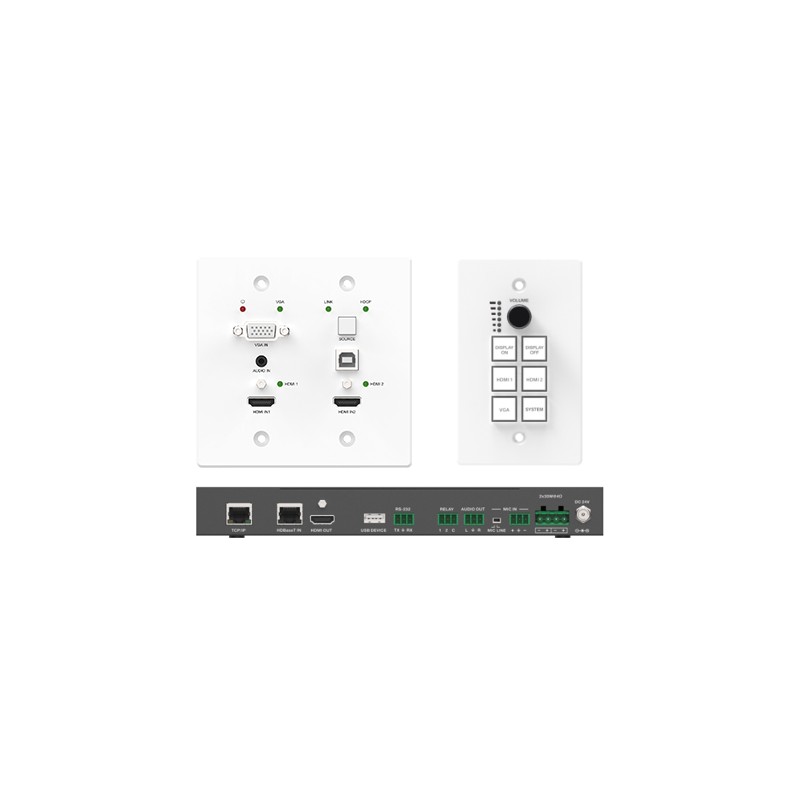 ✳ Le kit de plaque murale infobit HDBaseT (WP200-Kit) est une solution intégrée intelligente pour l'éducation et la salle de réunion. Il prend en charge deux entrées HDMI et une VGA, la commutation vidéo, un amplificateur audio analogique et un panneau de commande central. Il est compatible avec le tableau blanc pour répondre à tous les appareils de votre application d'éducation et de réunion. Les signaux vidéo, audio et de contrôle non compressés peuvent être transmis en utilisant la technologie HDBaseT via un seul câble Cat5 / 6 / 6a jusqu'à 230 pieds / 70 mètres (1080p) ou 130 pieds / 40 mètres (4K30), peuvent être contrôlés via l'interface graphique Web et le Panneau de configuration.